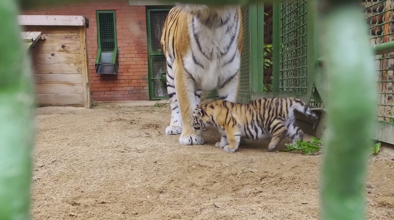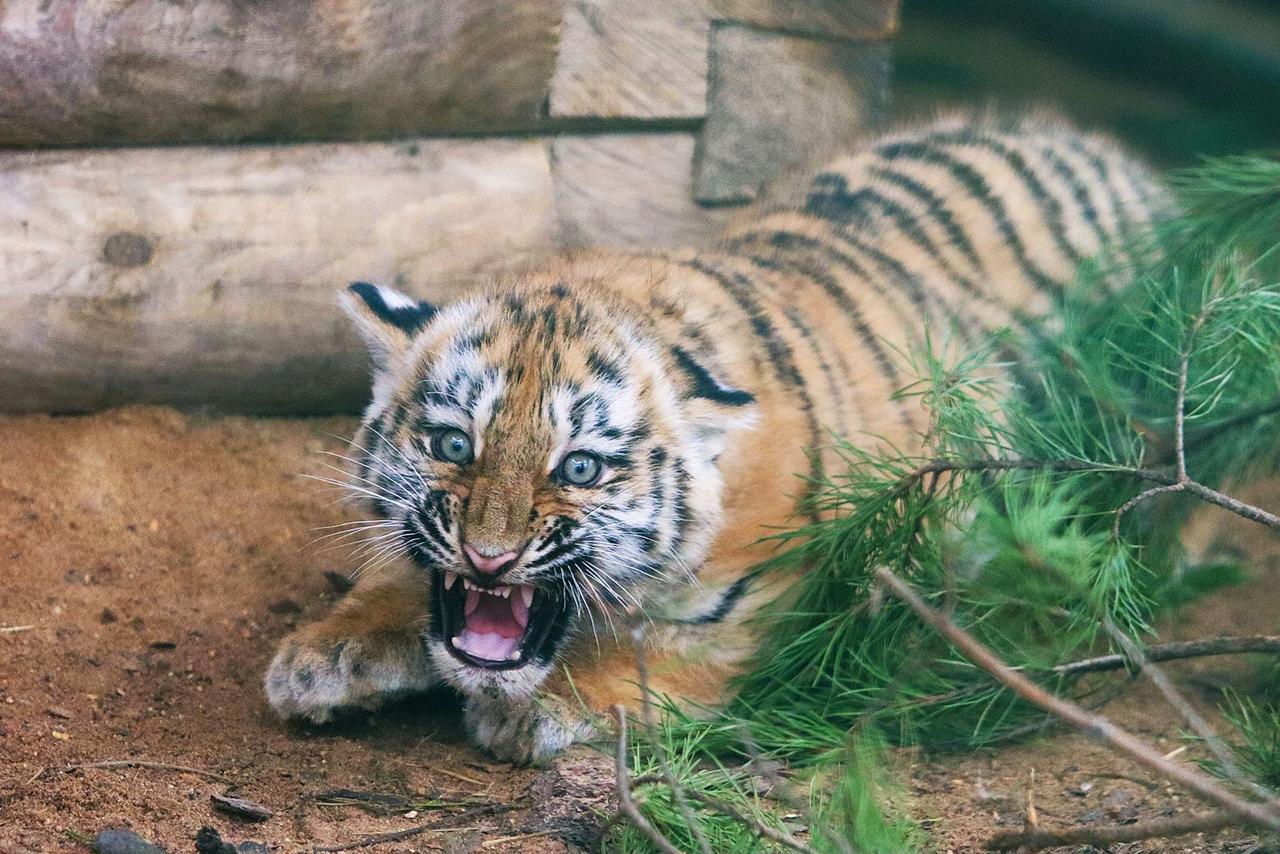 В Московском зоопарке родились два амурских тигренка — это самец и самка, оба уже весят по 12 кг. Появились на свет они еще в конце августа, но только сейчас начали выходить в уличный вольер.