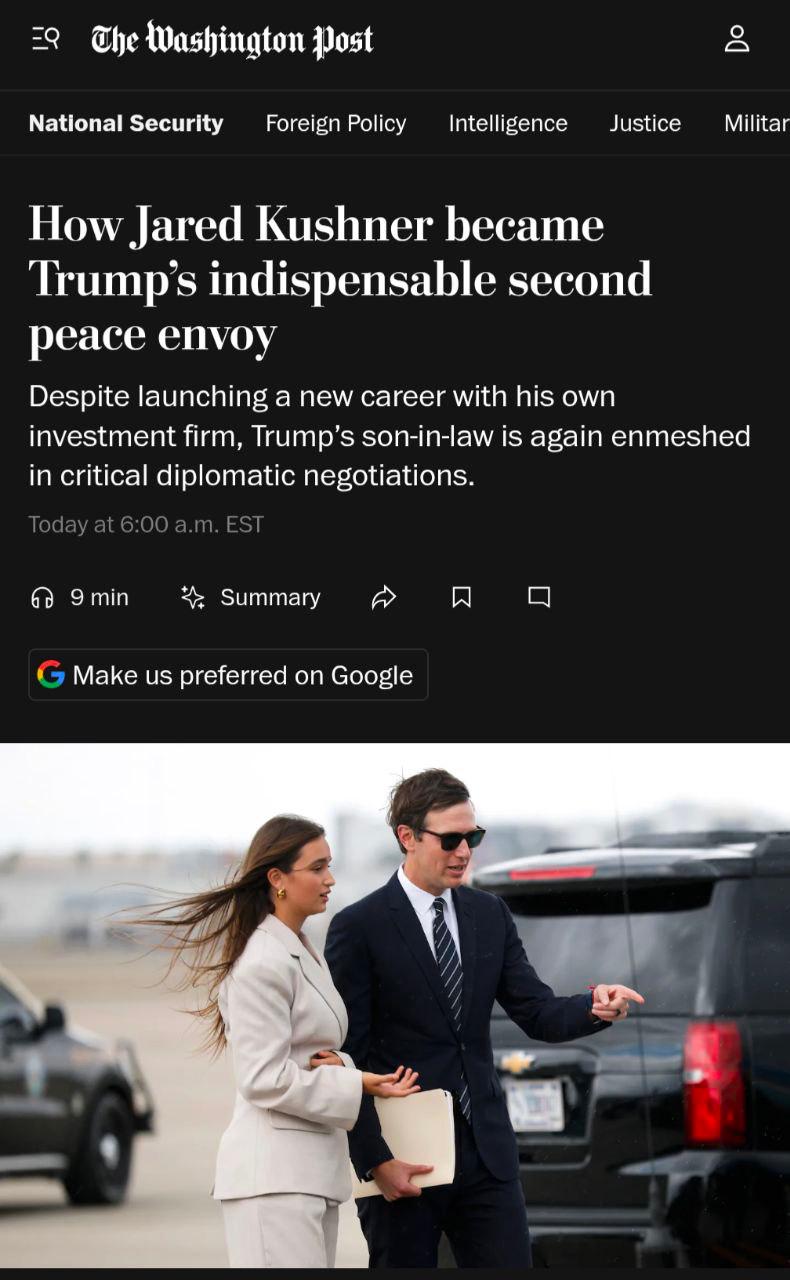The Washington Post вспоминает показательный эпизод 2019 года. В Брюсселе специально устроили ужин, чтобы познакомить нового президента Украины Зеленского с зятем Трампа Джаредом Кушнером.