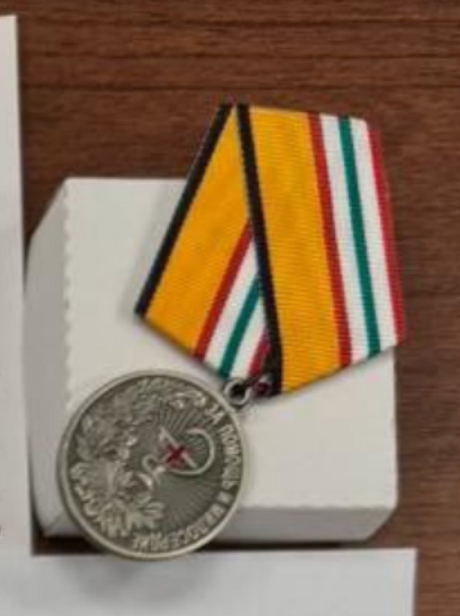 Доехала медаль от министерства обороны России за оказываемую помощь вооруженным силам.