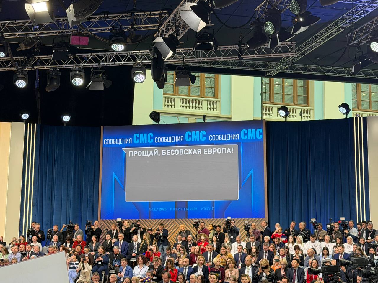 «Владимир Путин наш слоняра!» — некоторые вопросы и предложения президенту, которые транслировались на экране