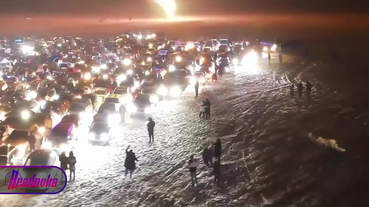 Необычная елка из фар и колес выстроилась неподалеку от деревни Минино под Красноярском — на праздник приехали 500 машин, рассказали организаторы акции. Авто начали собираться в дерево еще с 2 часов дня, а в 23:00 они синхронно зажгли огни, и в воздух полетели салюты. Вместе с водителями на празднике были Дед Мороз и Снегурочка, а один из участников даже сделал предложение своей девушке.