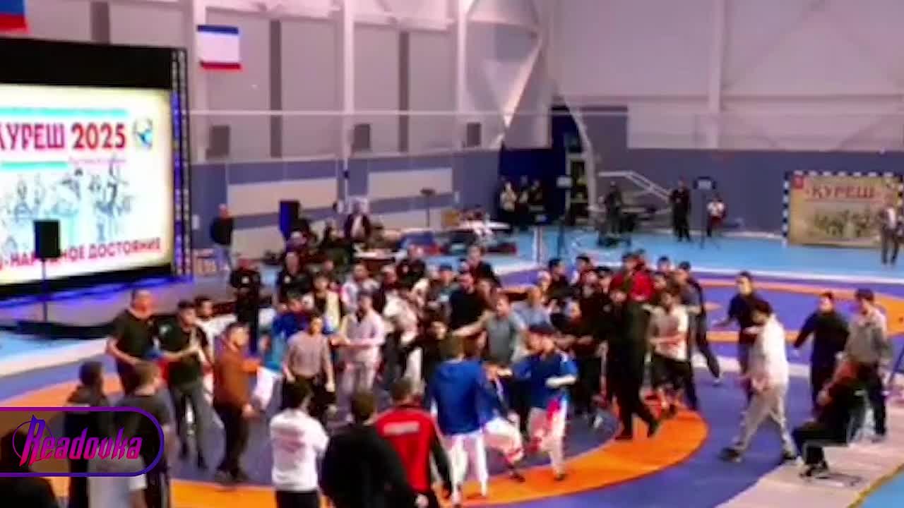 Борцы устроили заварушку во время турнира по тюркской борьбе «Куреш-2025» в крымском Симферополе. Конфликт начался после поражения одного из спортсменов — он не смог смириться с проигрышем и полез выяснять отношения на кулаках, к нему присоединились остальные.