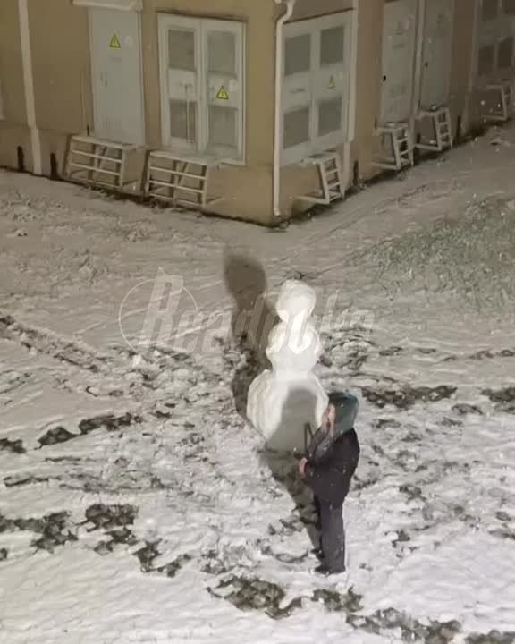 Выпал снег, а это значит, пора лепить снежные фигуры, и неважно, на 6 или 26 лет. В одном питерском дворе соседи заметили девушку, которая слепила огромного снеговика. Жильцы решили поучаствовать в инсталляции и скинули для ее композиции — глаза, шляпу и руки.