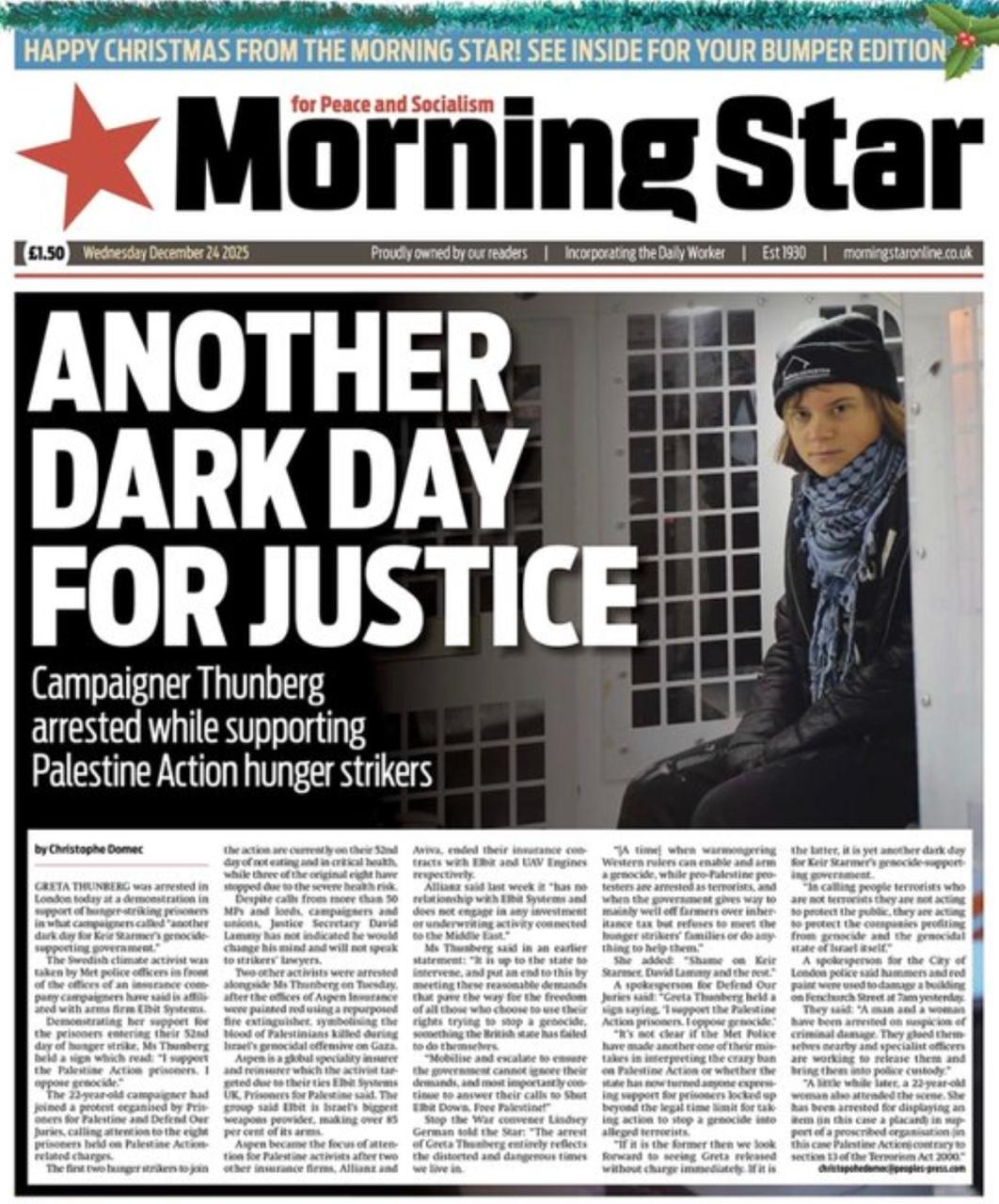 «Еще один черный день для юстиции». Во как! Некогда кумир западных либералов, некогда «человек года» Грета Тунберг - теперь героиня газеты леваков и коммунистов Британии Morning Star.