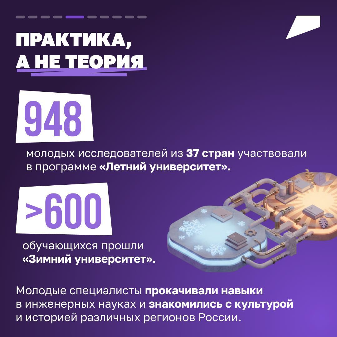 Примеры: новый молодежный центр в Надыме, грантовый проект о культуре Ингушетии, биотехнологические разработки ПИШ в Петербурге, школы с современными лабораториями в Ярославле, колледжи с практикой в Забайкалье и Татарстане.
