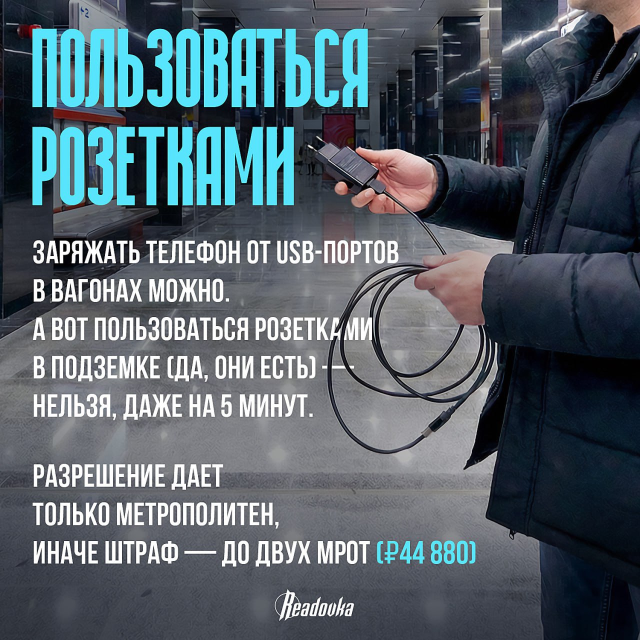 Можно ли зарядить телефон от розетки на станции? Что будет, если прокатиться босиком? Оказывается, за это и многое другое можно получить не просто замечание, а вполне реальный штраф. Самые неожиданные запреты — в карточках Readovka.