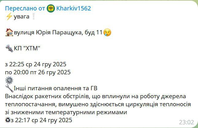 После российского обстрела ТЭЦ во многих районах отключили отопление и горячую воду — как минимум до пятницы, сообщают местные жители.
