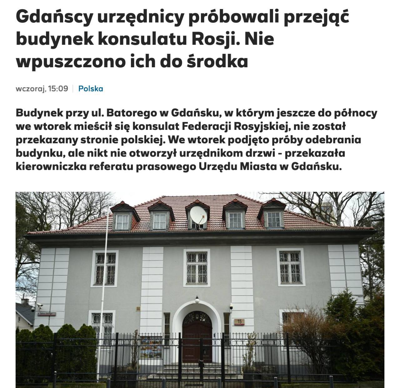 В Польше жалуются: местные чиновники не смогли захватить здание генерального консульства России в Гданьске, поскольку никто не открыл им двери.