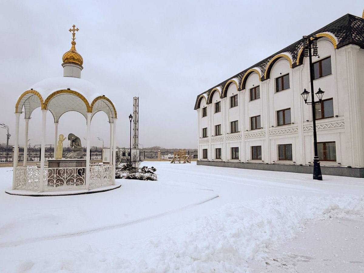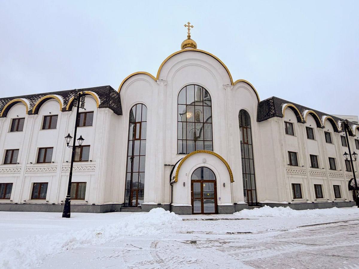 Белокаменный пятиглавый храм, выполненный в традициях древнерусского зодчества XII века, был открыт в этом году и посвящён строителям России.