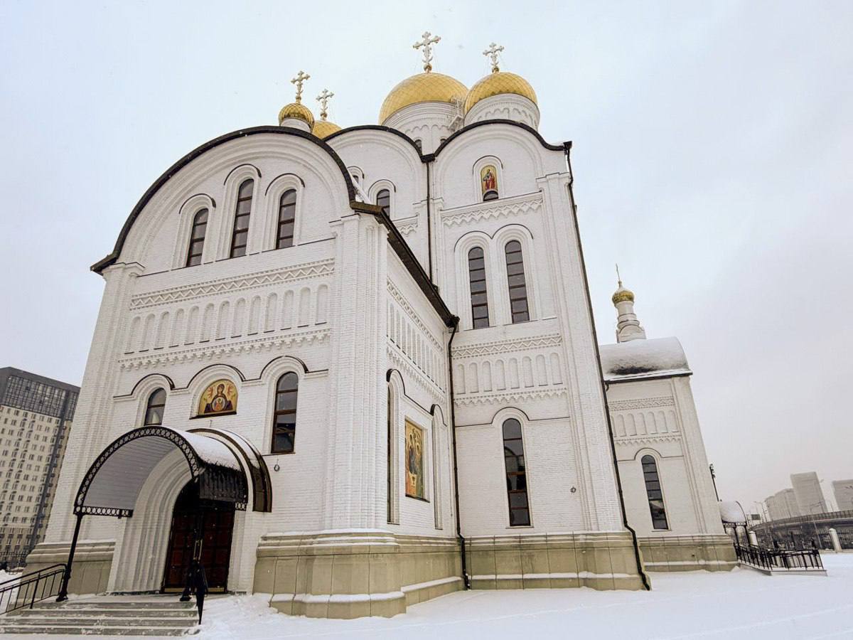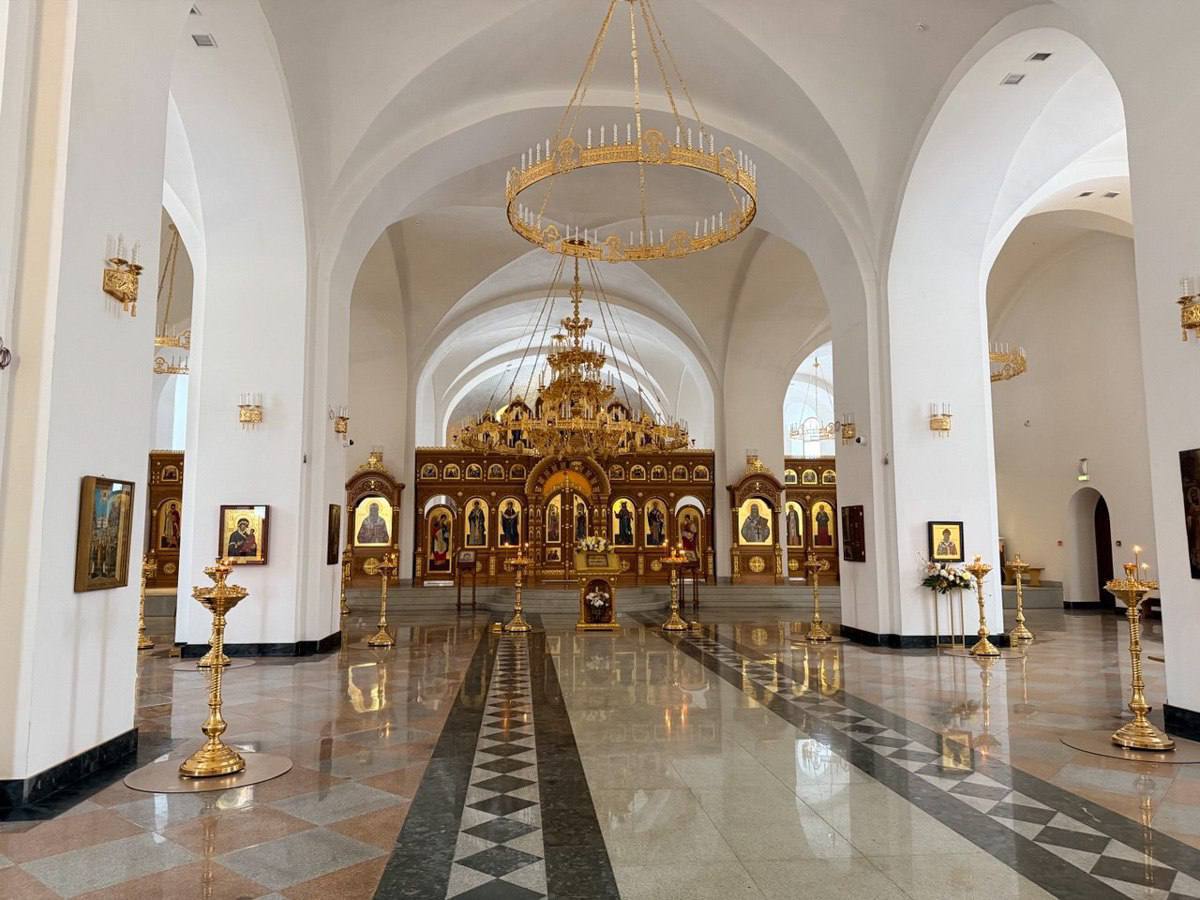 В оформлении его интерьеров использованы уникальные мозаики и мрамор 12 оттенков. На первом этаже располагается нижний храм в честь блаженной Ксении Петербургской. Верхний храм – в честь Успения Пресвятой Богородицы.