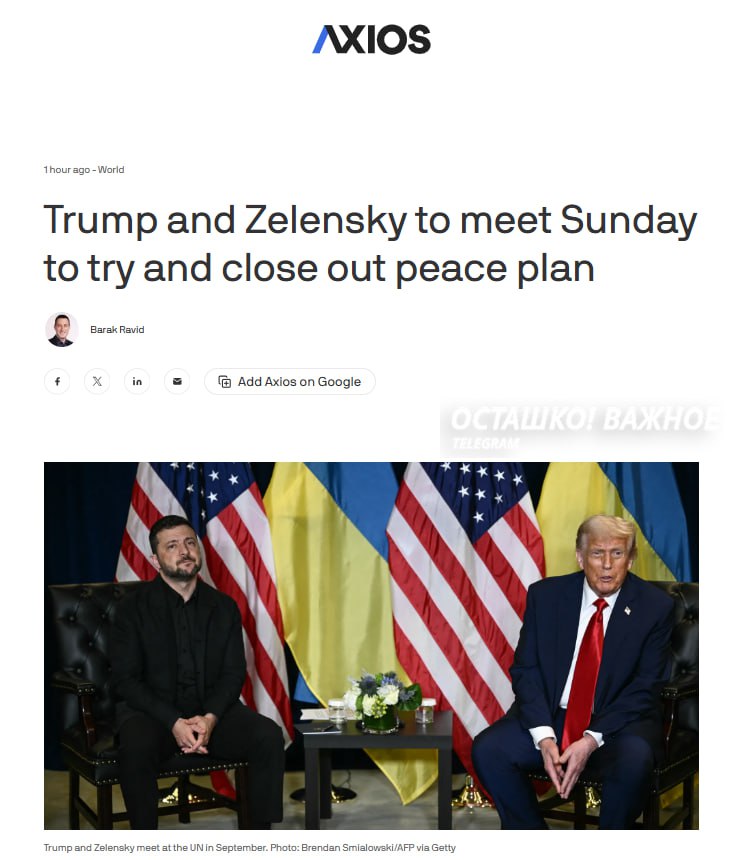 Почти всё согласовано: Трамп и Зеленский встречаются в воскресенье, чтобы закрыть мирный план