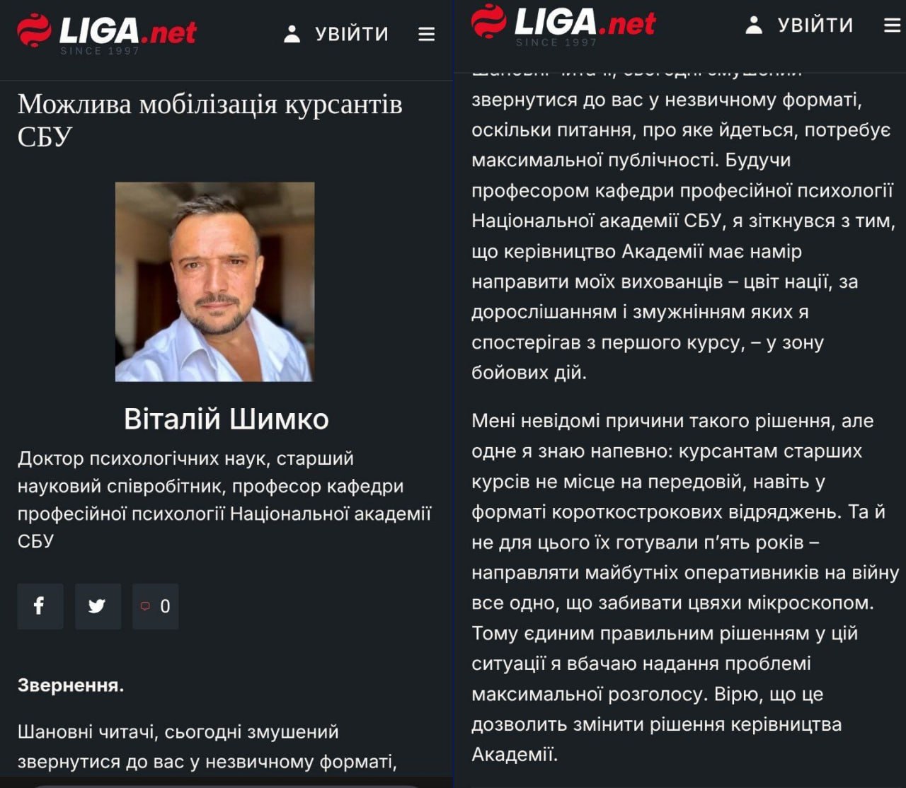 «Руководство академии намерено направить моих воспитанников… в зону боевых действий», — написал Шимко в колонке для издания.