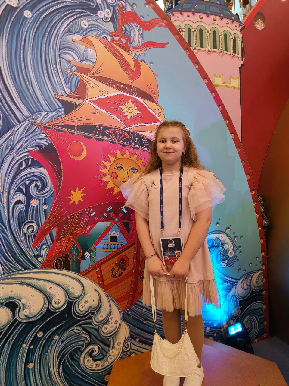 Здесь же, на малой сцене, с русским народным танцем выступила 8-летняя София САВЧЕНКО из Пскова – дочь Героя Российской Федерации, иерея Антония САВЧЕНКО, погибшего на СВО.