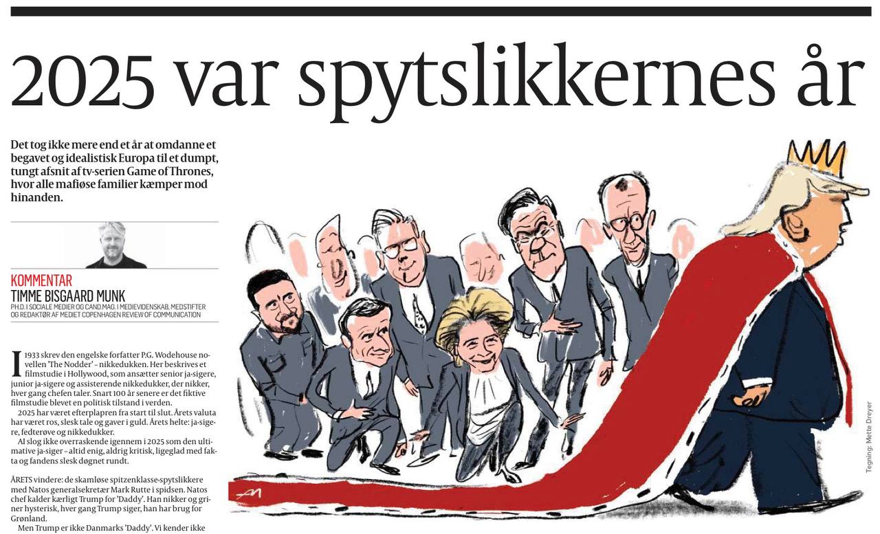 «2025 год стал годом подлиз». Так датская газета Politiken подводит политические итоги года. Автор (доктор наук Тиме Мунк) рвет на себе волосы: