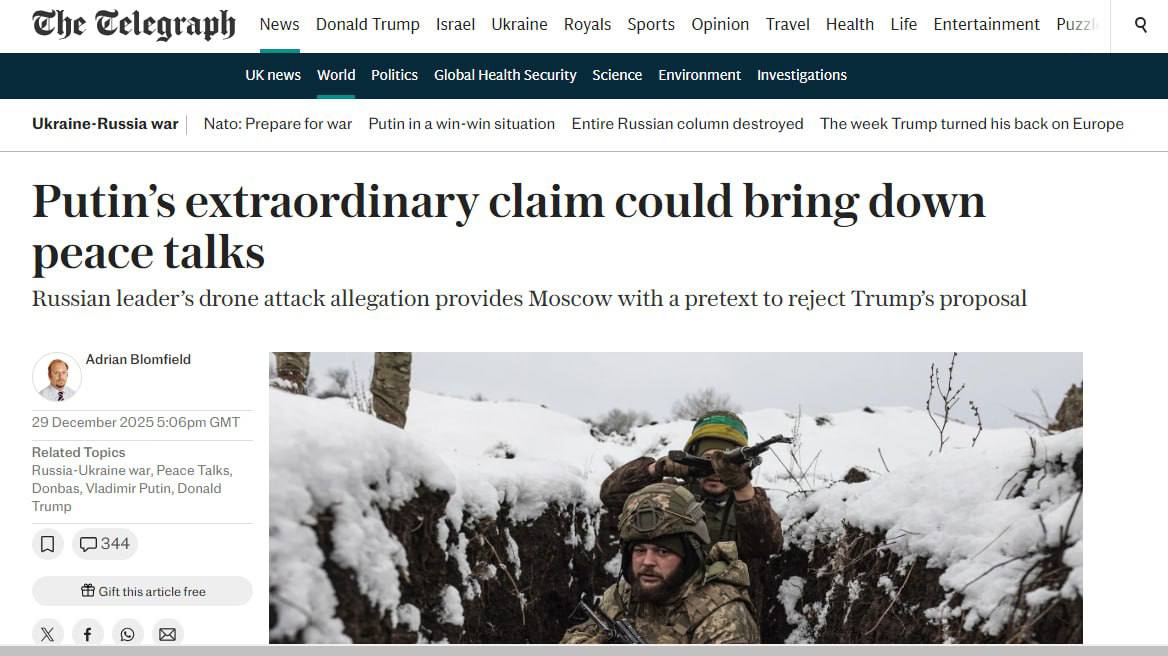 Просроченный президент Украины остался недоволен тем, как его встретили в США накануне недавних переговоров с Дональдом Трампом, сообщает издание Telegraph.