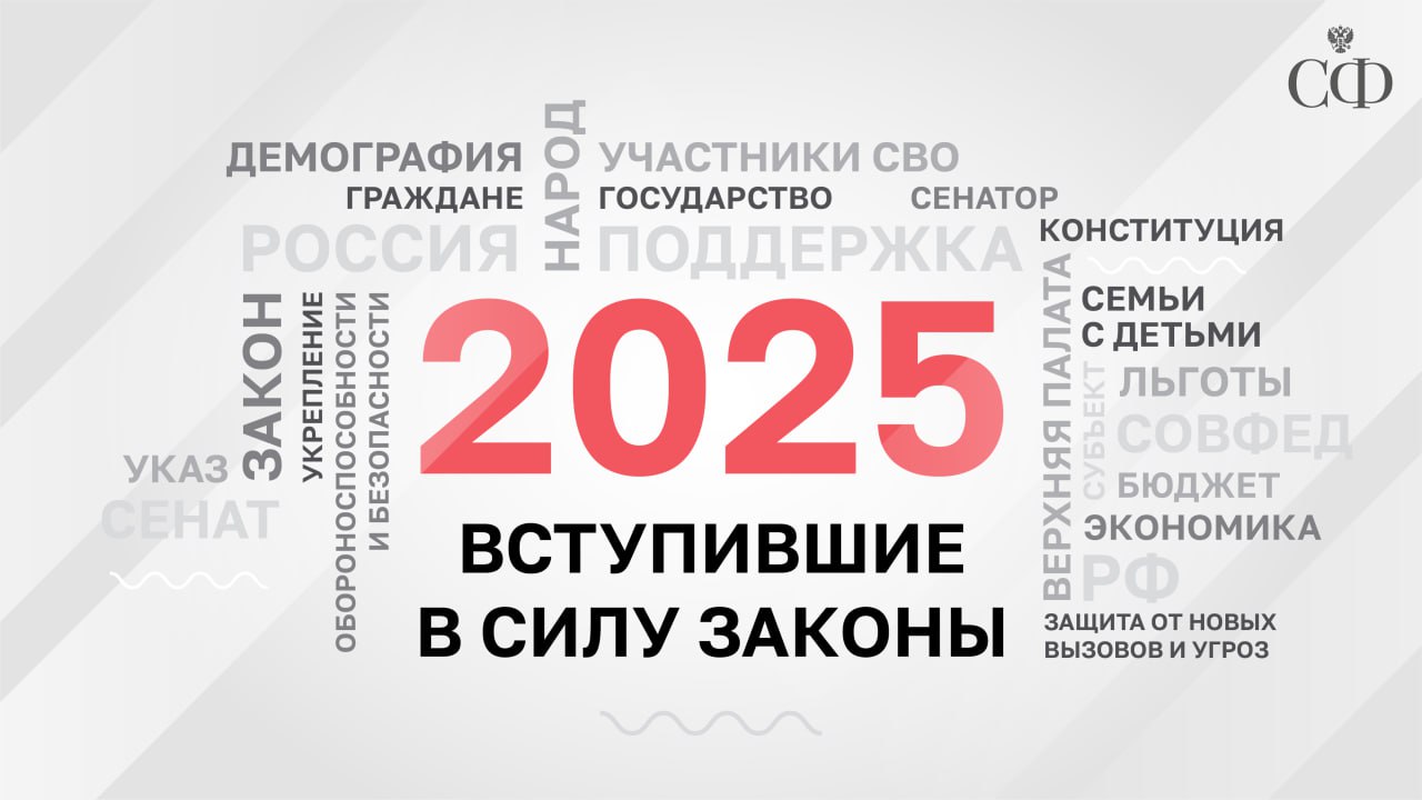 В 2025 году работа Совета Федерации была сосредоточена на главных для страны задачах — поддержке участников СВО и их семей, помощи семьям с детьми, развитии демографии и социальных инициатив. Особое внимание сенаторы уделяли вопросам экономики, обороны и безопасности, защите людей от новых вызовов и угроз. Многие законы, одобренные Советом Федерации в 2025 году, уже вступили в силу.