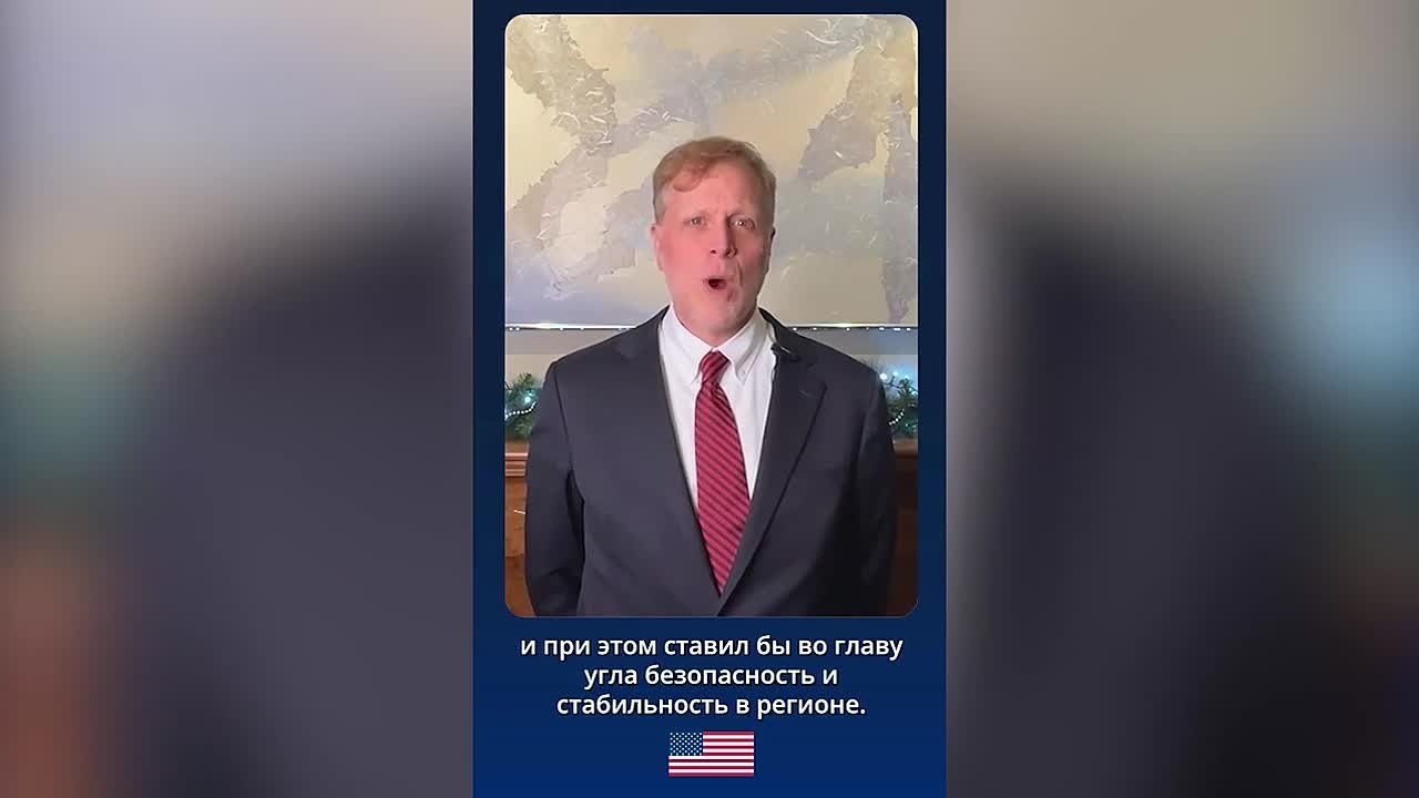 «Дорогие друзья, с наступающим Новым годом. Я передаю искренние поздравления вам и вашим семьям от имени американского народа. Дух этого времени года располагает к размышлениям, обновлению и надежде. Это время, когда люди во всем мире задумываются не только об уже пройденном пути, но и том, куда двигаться дальше», — сказал Дайкхаус.