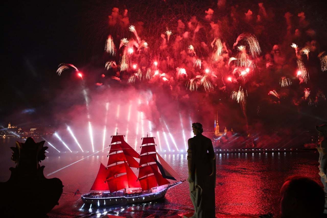 Бриг Россия на реке Неве во время праздника выпускников Алые паруса в Санкт-Петербурге (Алексей Даничев / РИА Новости)