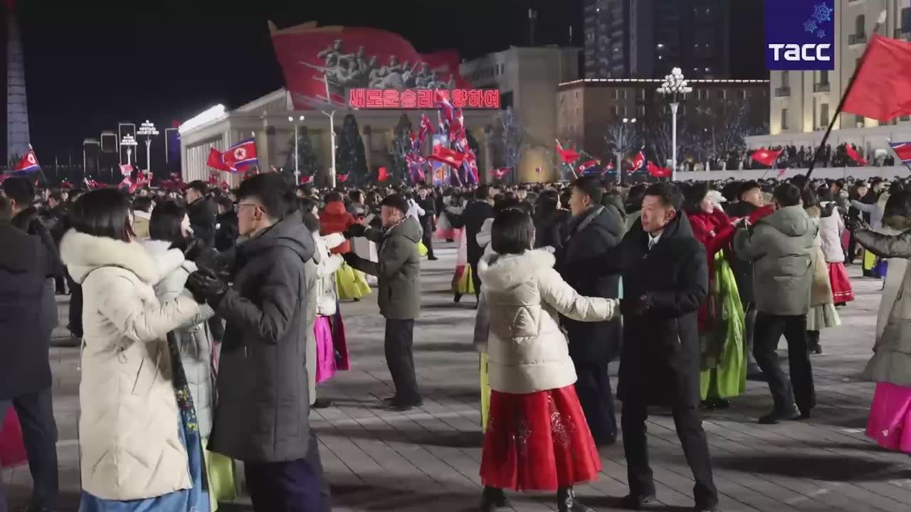 В столице КНДР на площади имени Ким Ир Сена отметили наступление Нового года массовыми танцами.