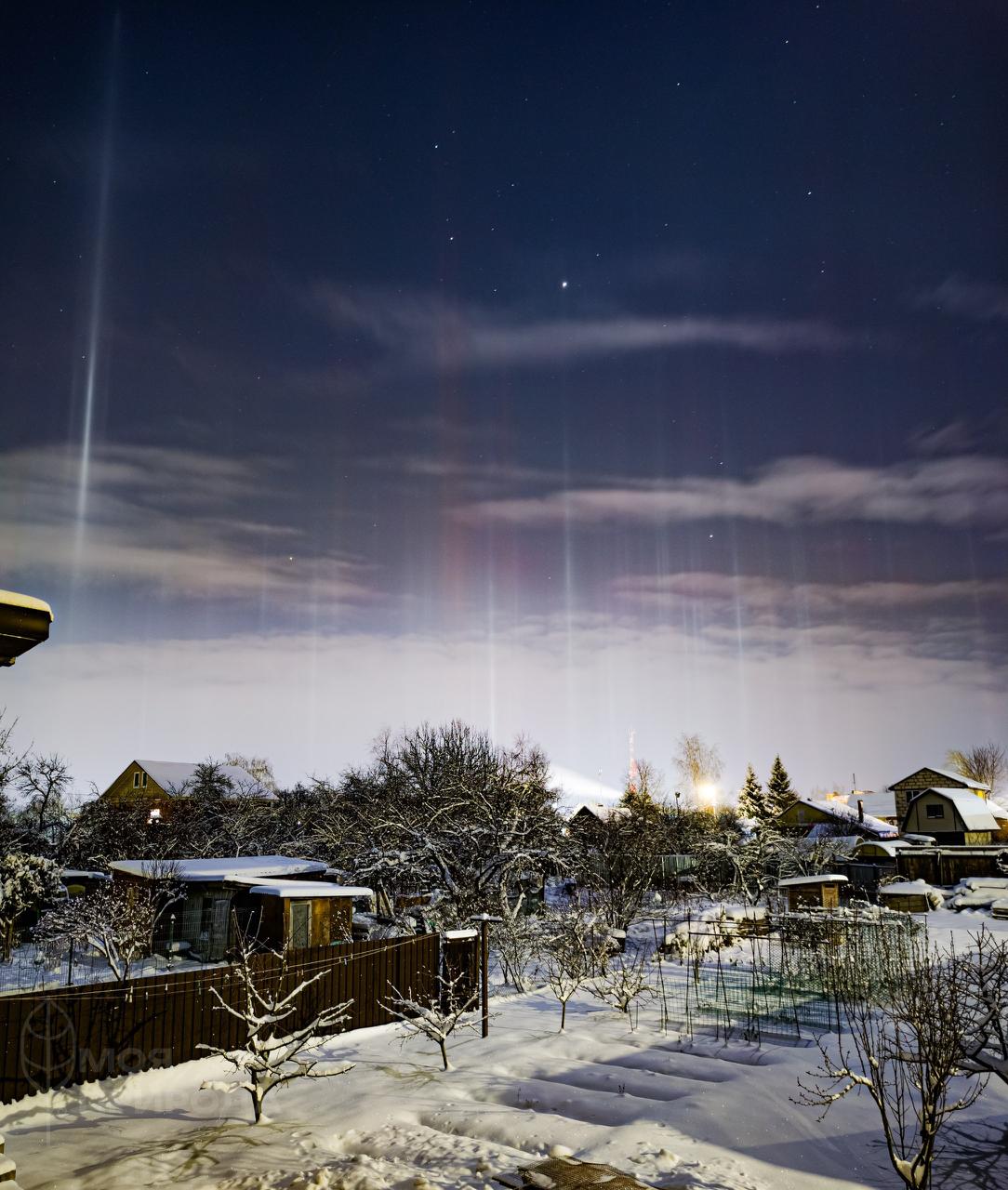 Такое природное явление обычно возникает в мороз, когда свет отражается от плоских ледяных кристаллов, взвешенных в воздухе.