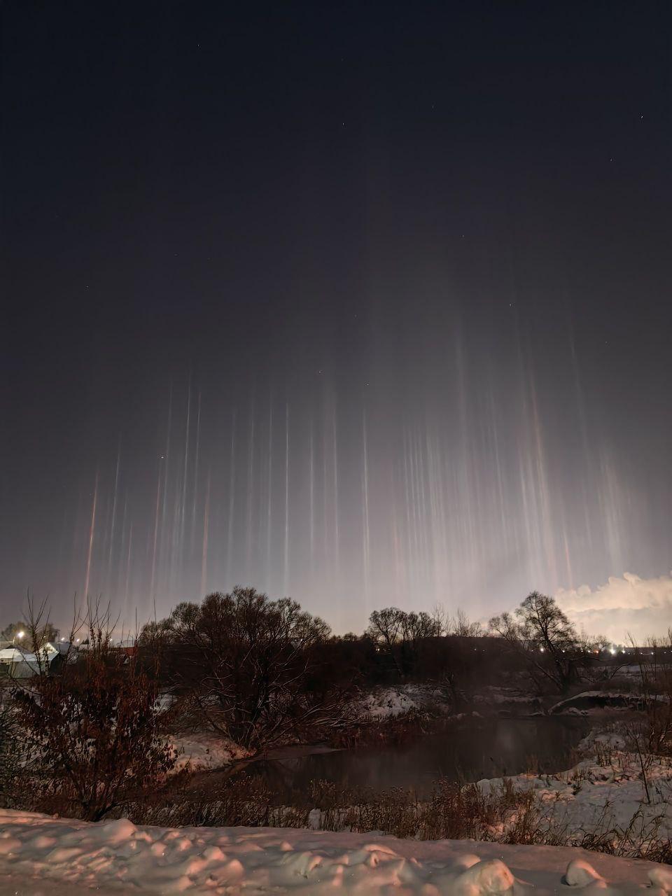 Жители нескольких регионов страны этой и прошлой ночью могли увидеть световые столбы.