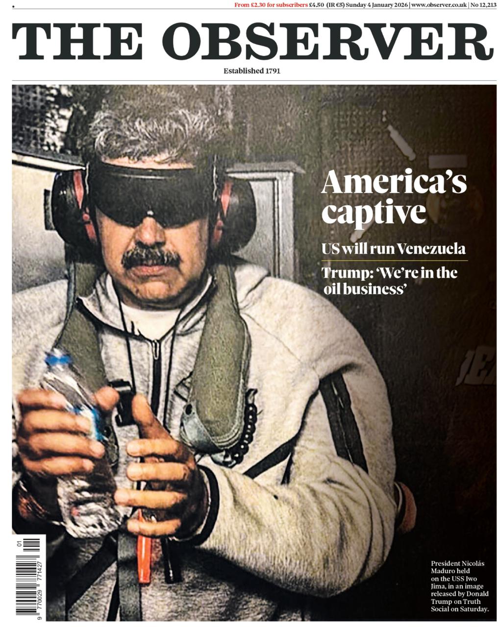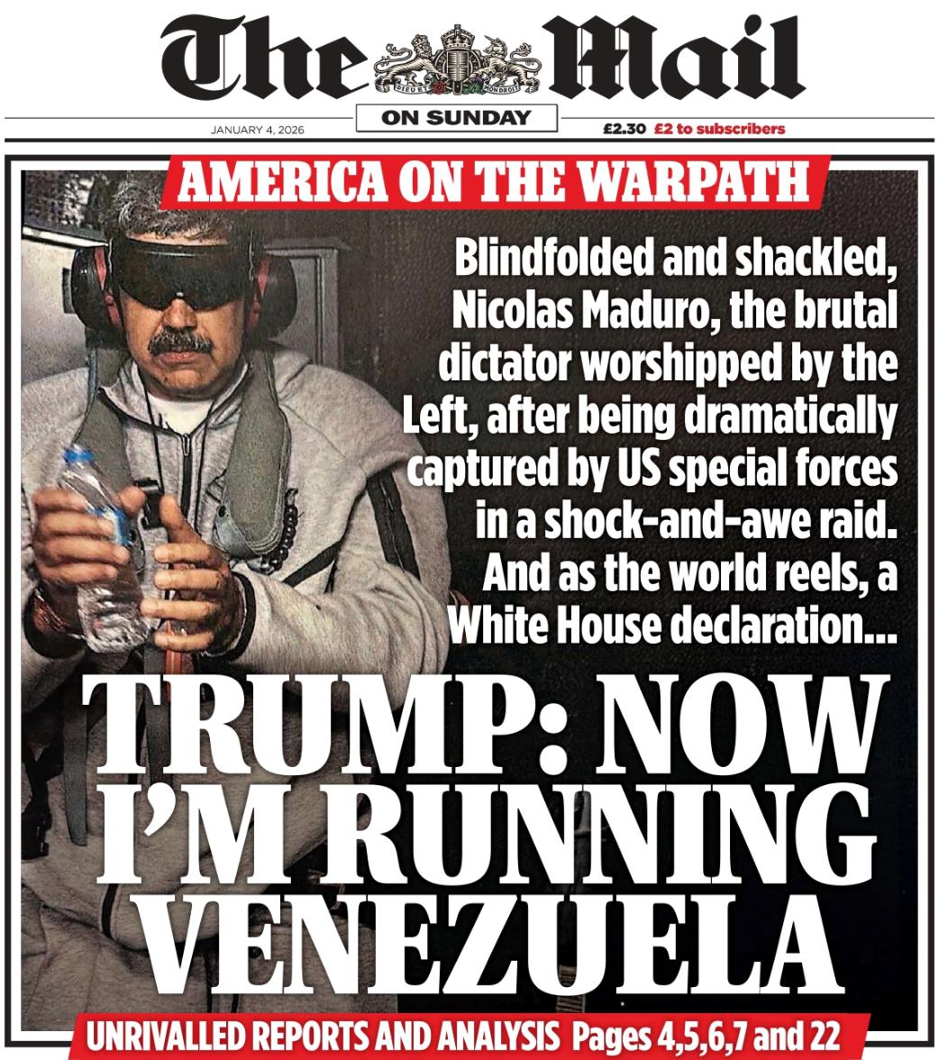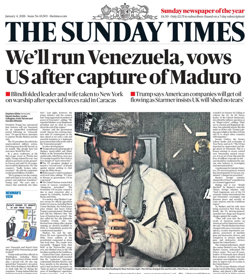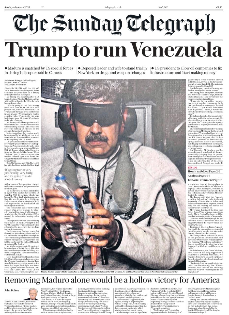 Британские газеты в основном делают упор не столько на сам захват Мадуро, сколько на слова Трампа о том, что он будет отныне управлять Венесуэлой.