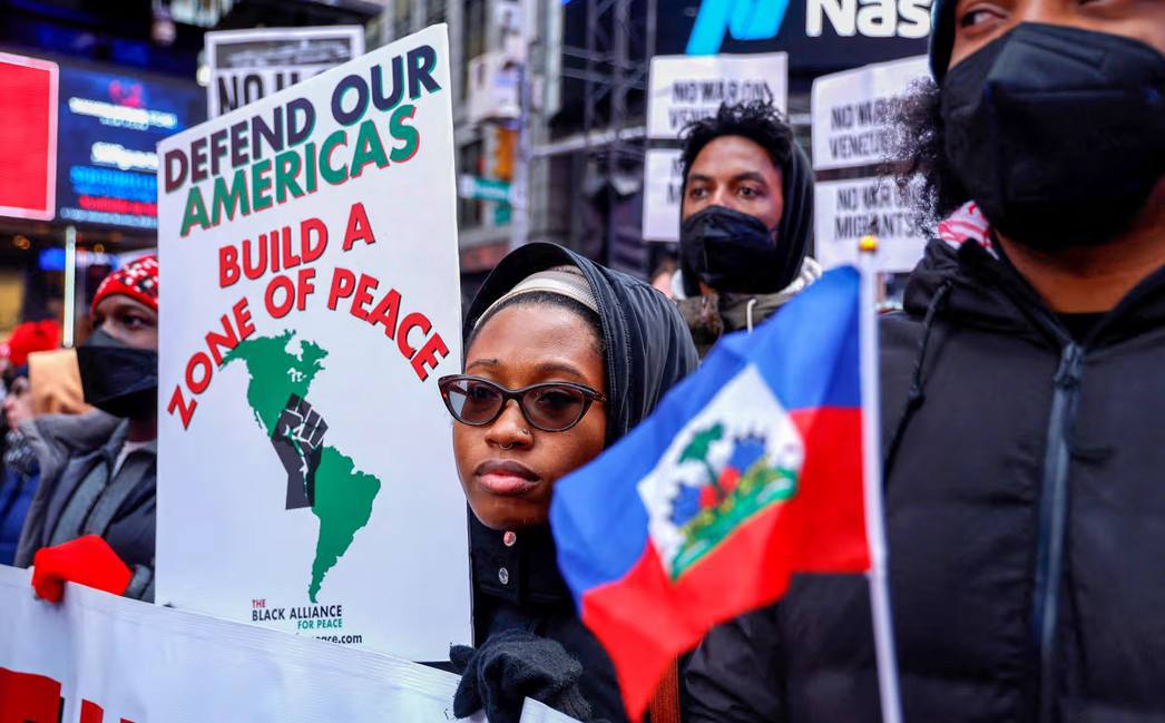 Кадры протестных движений в Нью-Йорке против политики США и действий направленных против Венесуэлы.