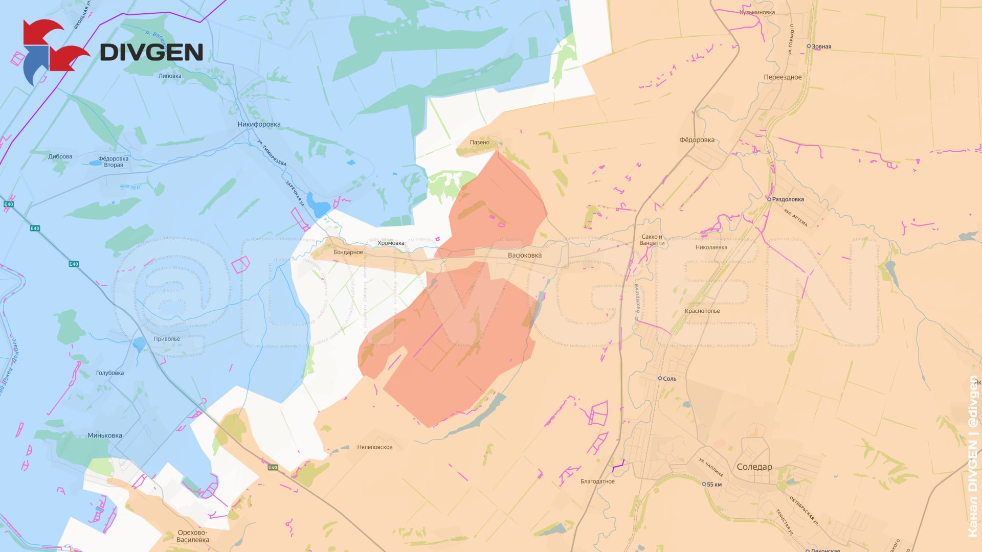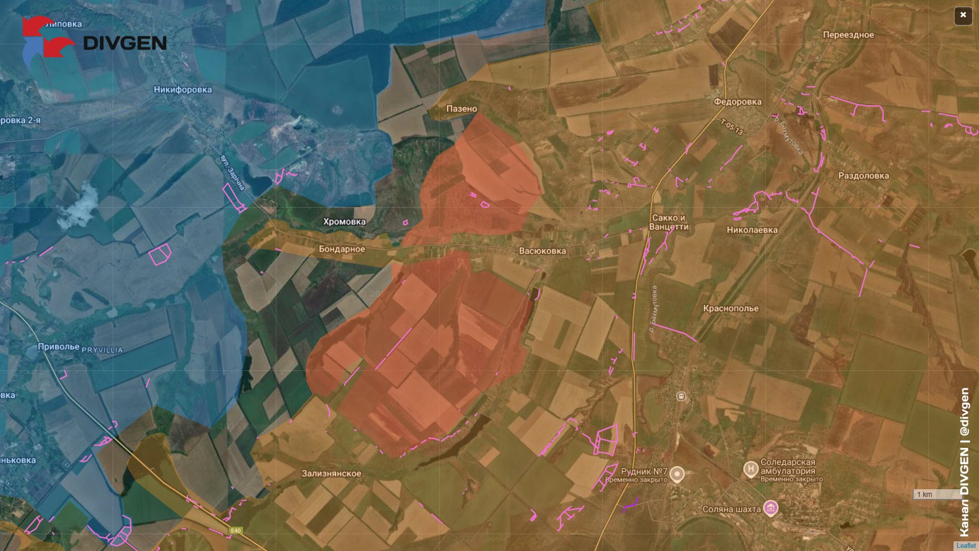 Славянско-Краматорское направление. Подразделения ГВ «Юг» развивают наступление в районе Васюковки — Бондарного.