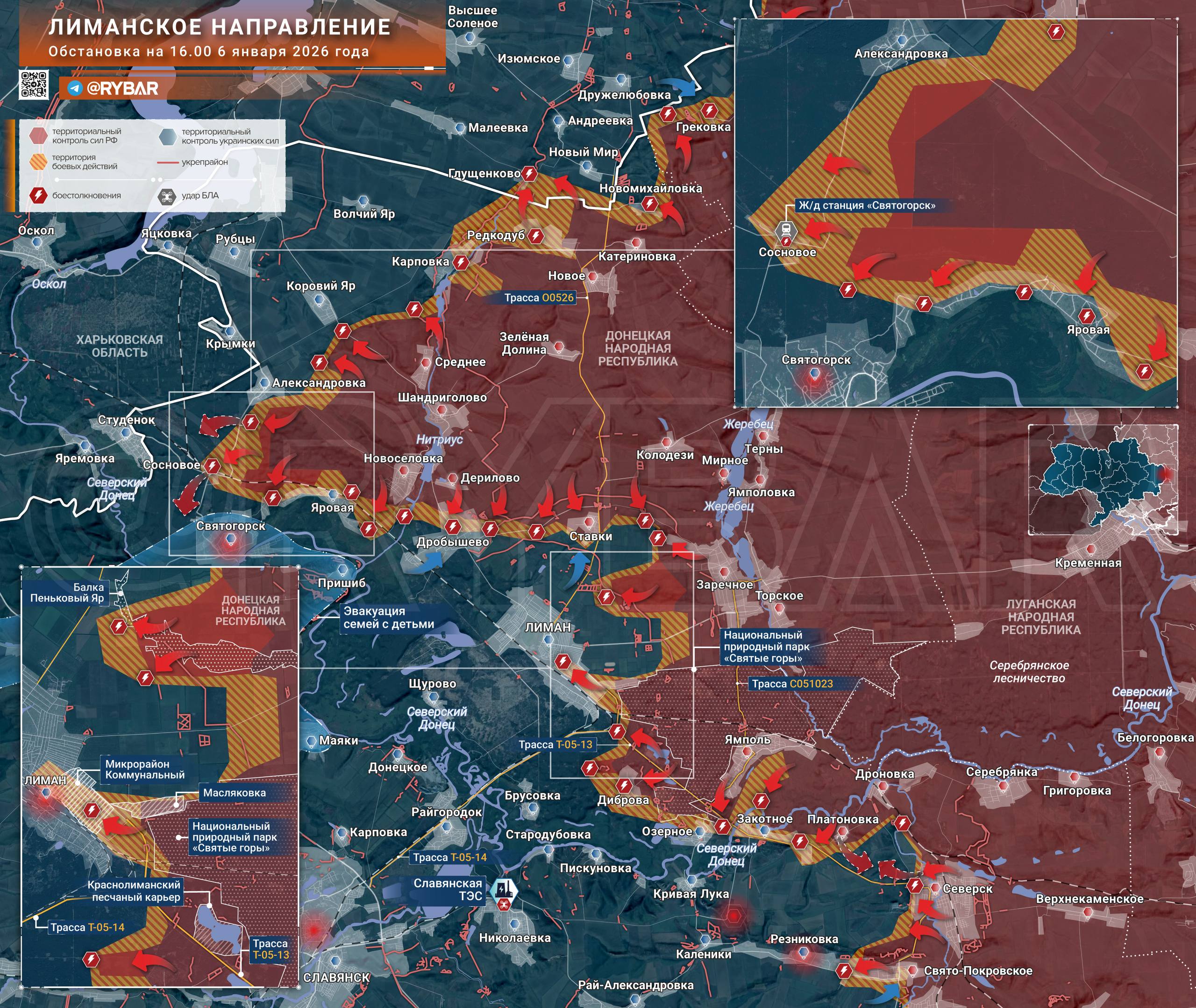 Также штурмовики в ходе серии атак в декабре оттеснили противника из Пенькового Яра на подступах к самому Лиману. Занятие этого лесного массива позволит ВС РФ установить огневой контроль над маршрутами снабжения украинских формирований в районе Ставков.