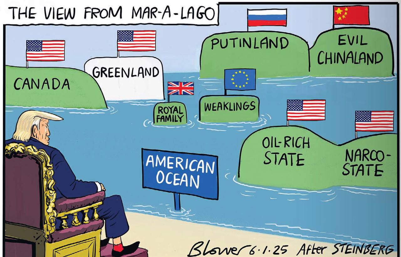 Как Трампу видится «Американский океан» из его резиденции в Мар-о-Лаго. Во всяком случае, так полагает The Daily Telegraph. Островок «Слабаки» под флагом Евросоюза что-то совсем незаметен на фоне других земель.