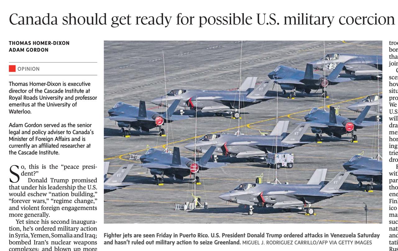 «Канаде надо приготовиться к возможному военному давлению со стороны США». Под таким заголовком на страницах газеты The Globe and Mail опубликовали статью ведущие эксперты института Каскад.