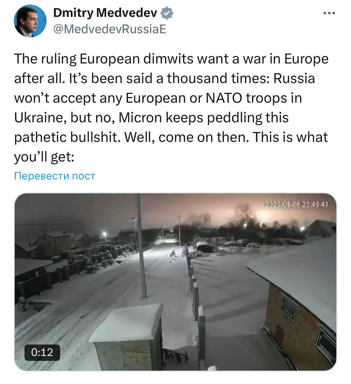 Свое заявление зампред Совбеза дополнил кадрами удара «Орешником» по западу Украины.