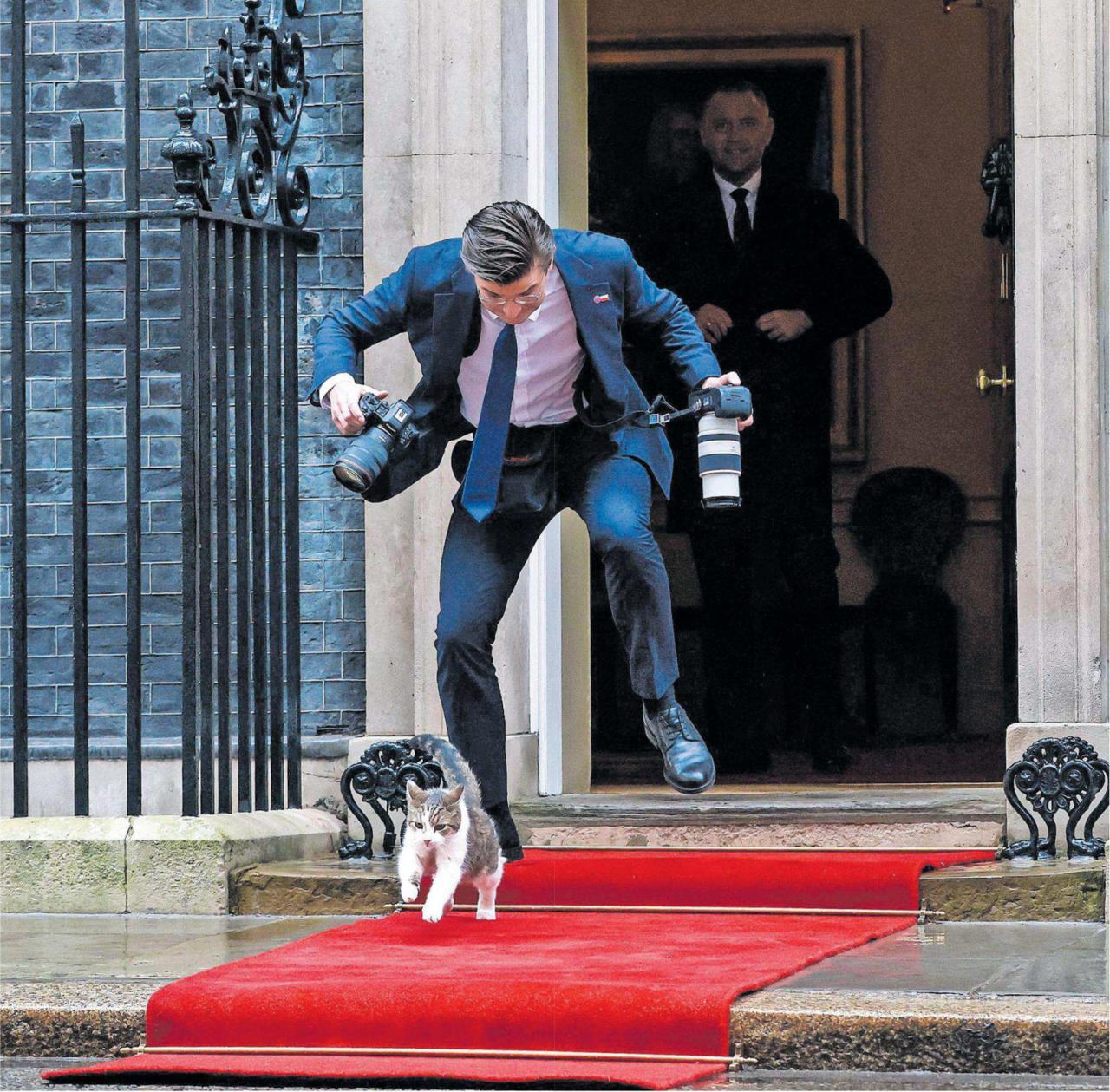 Кот Ларри вчера на Даунинг-стрит, 10 украл шоу у президента Польши Навроцкого, сбив с ног его придворного фотографа.