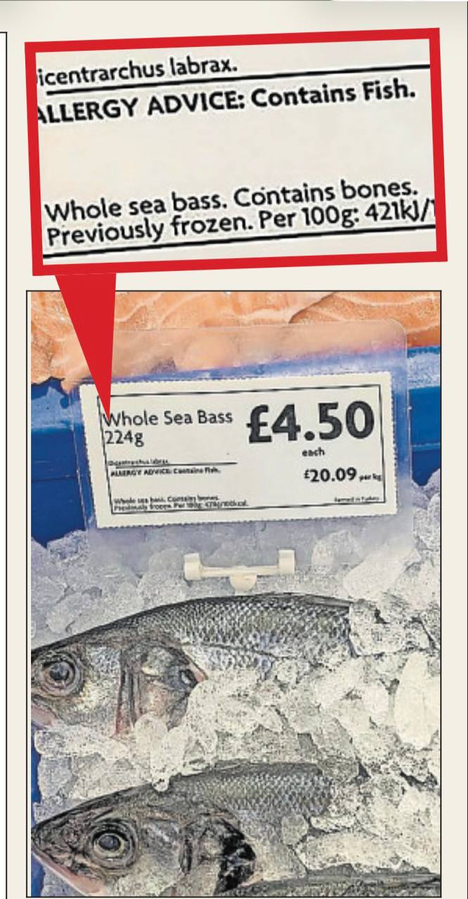 Британская The Sun от души веселится, обнаружив, что в их супермаркетах на ценниках с целыми сибасами появилось очень ценное предупреждение для аллергиков: «Содержит рыбу». Чтобы в самом деле не подумали чего другого!
