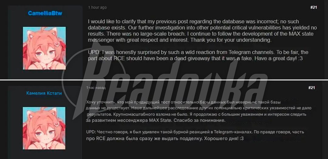 Анонимный автор фейка о якобы взломе мессенджера МАХ сам опроверг эту информацию