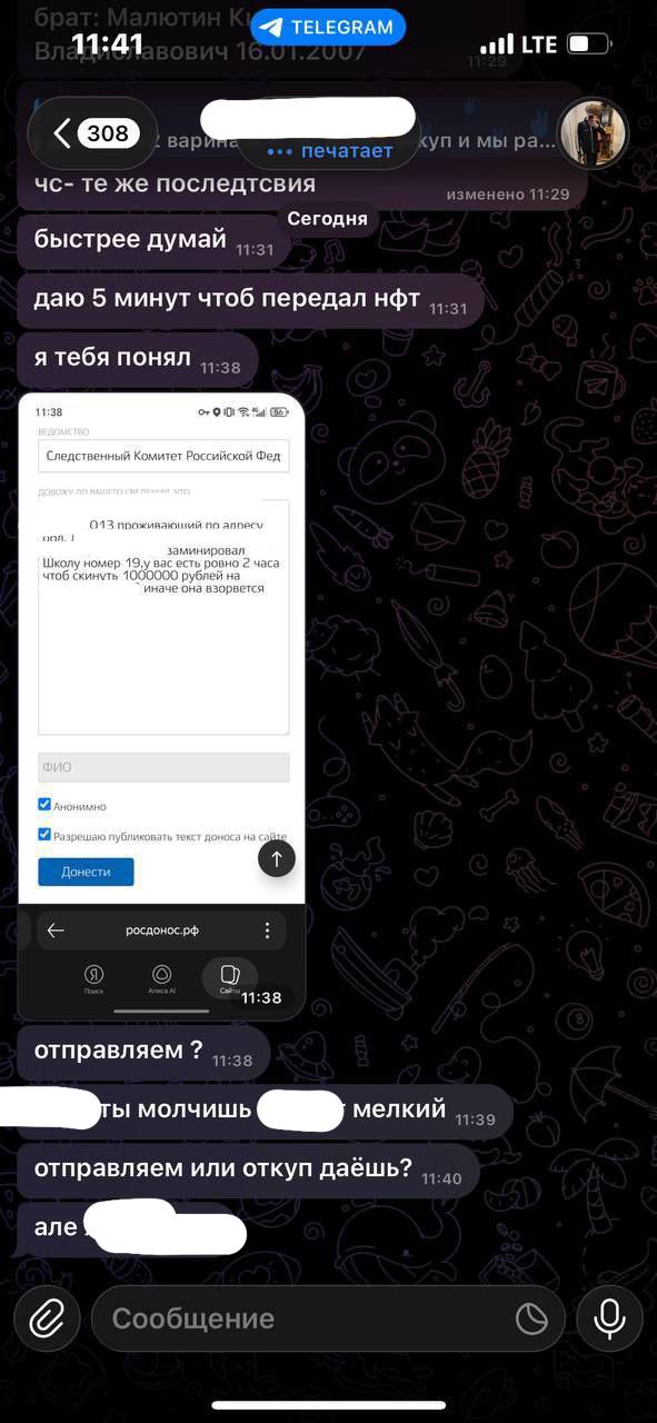 В последнее время очень часто пишут подростки, у которых вымогают подарки в ТГ под угрозой сватинга (отправки ложных сообщений о минировании). Выглядит это так: сначала незнакомец пишет в личку и предлагает продать подарок, показывая накрученные отзывы и фейковые скрины с банковских счетов. После отказа продать подарок, начинают запугивать сливом личных данных и отправкой сообщений о ложном минировании в органы власти.