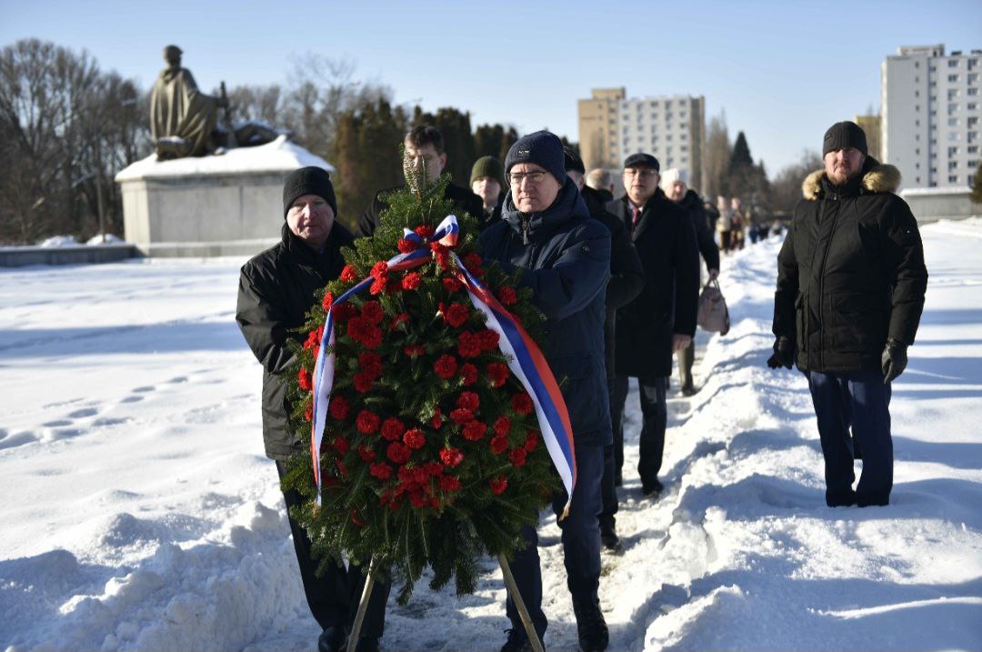 17 января 2026 года по случаю 81-й годовщины освобождения Варшавы Красной Армией от гитлеровской оккупации Временный поверенный в делах России в Польше А.Э.Ордаш, Временный поверенный в делах Белоруссии в Польше А.В.Понкратенко, Торговый представитель России в Польше А.Ю.Морозов, сотрудники российских загранучреждений, представители польских ветеранских и общественных организаций возложили венки и цветы на Мемориальном кладбище советских воинов в Варшаве.
