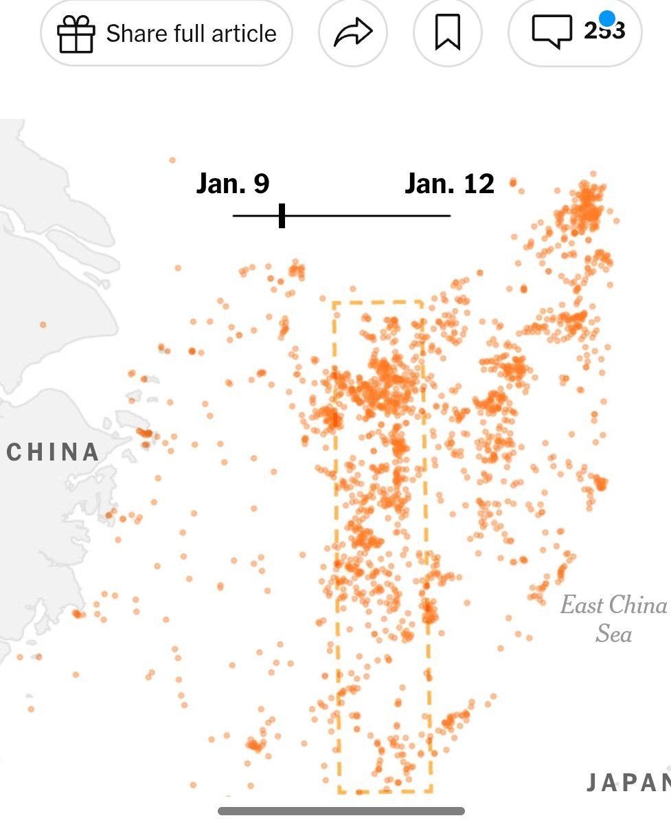 Районы нахождения судов расположены вблизи важных морских артерий Восточно-Китайского моря, через которые проходит трафик к г. Шанхай и другим крупным портам мира. В случае конфликта с США, Японией и их союзниками именно эти зоны станут главными точками борьбы за контроль над логистикой и морскими коммуникациями.