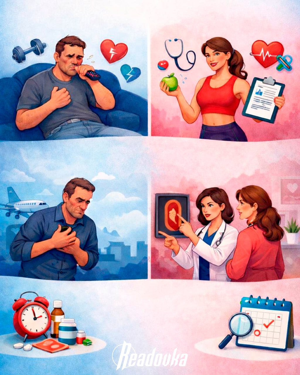 Наглядный история от терапевта: мужчина неделю терпел боль в груди, собираясь в отпуск. Его жена настояла на визите к врачу прямо перед вылетом. Обследование показало 90% закупорку артерии — еще несколько часов, и в самолете его ждал бы инфаркт. Экстренная операция спасла пациенту жизнь, и теперь он благодарит жену, что та проявила бдительность.