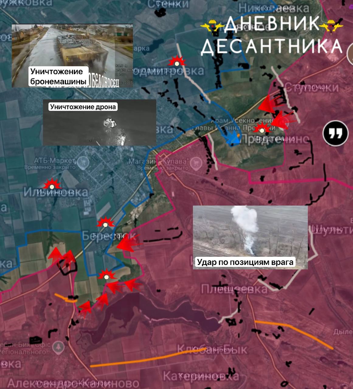 Также наши войска продвигаются к Берестку с восточной стороны, по самому селу идёт обработка вражеских позиций.