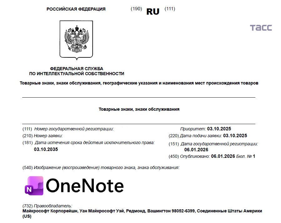 Microsoft в первые дни 2026 года зарегистрировала более 20 товарных знаков, выяснил корреспондент ТАСС.