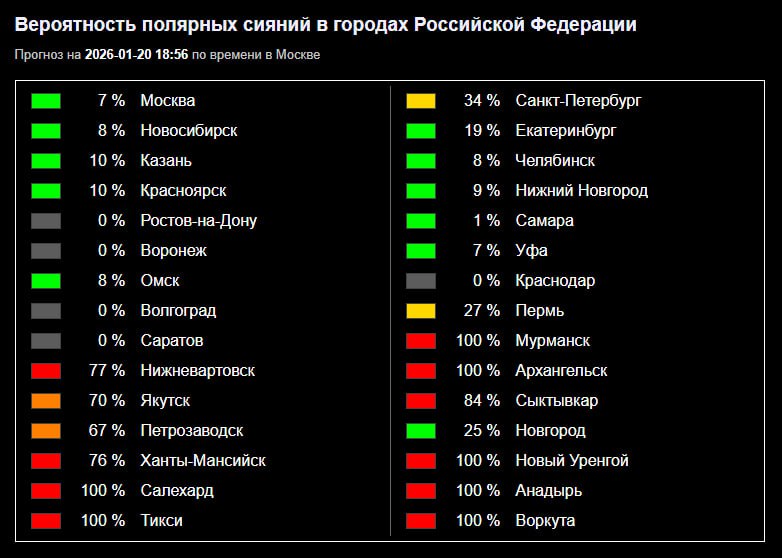 Полярное сияние возможно над европейской частью РФ в ближайшие два-три часа, сообщили в Лаборатории солнечной астрономии ИКИ РАН: