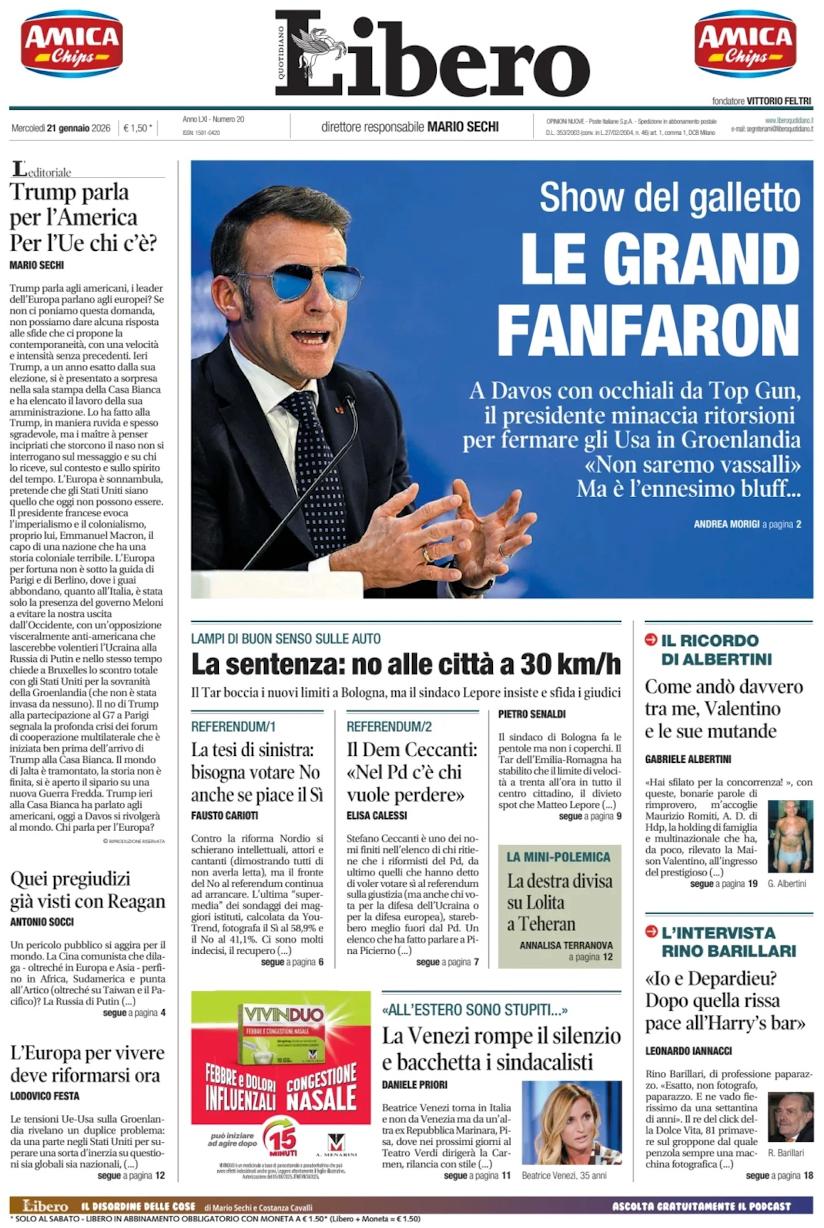 Показателен заголовок итальянской Libero, также вынесшей его фото на первую полосу: «Гранд фанфарон». Точное определение!