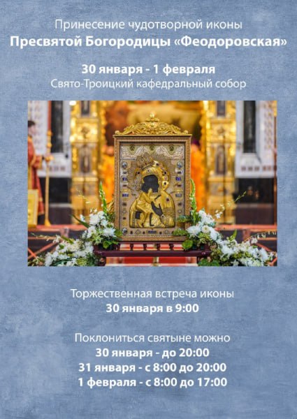 30 января состоится принесение в Псковскую епархию чудотворного образа Пресвятой Богородицы «Феодоровская»