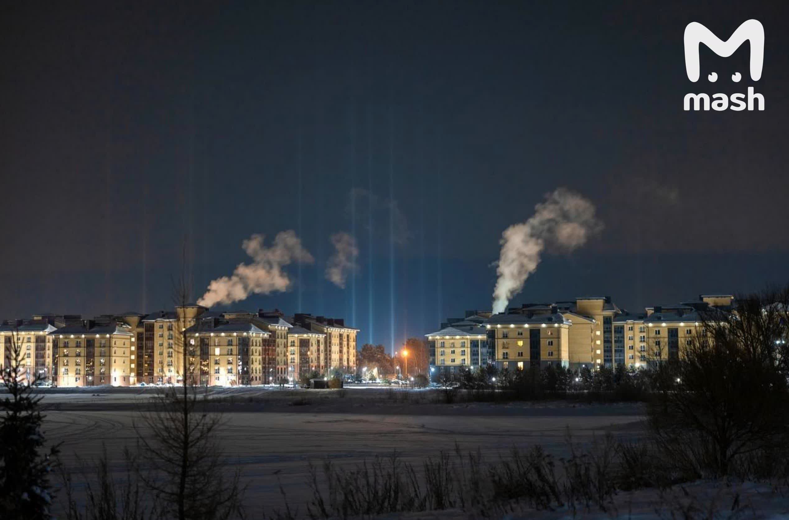 Красоты вам в ленту — над регионами России заметили маяки из "Майнкрафта" световые столбы.