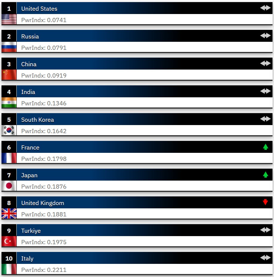 Ознакомиться с рейтингом и его детализацией можно по ссылке https://www.globalfirepower.com/countries-listing.php