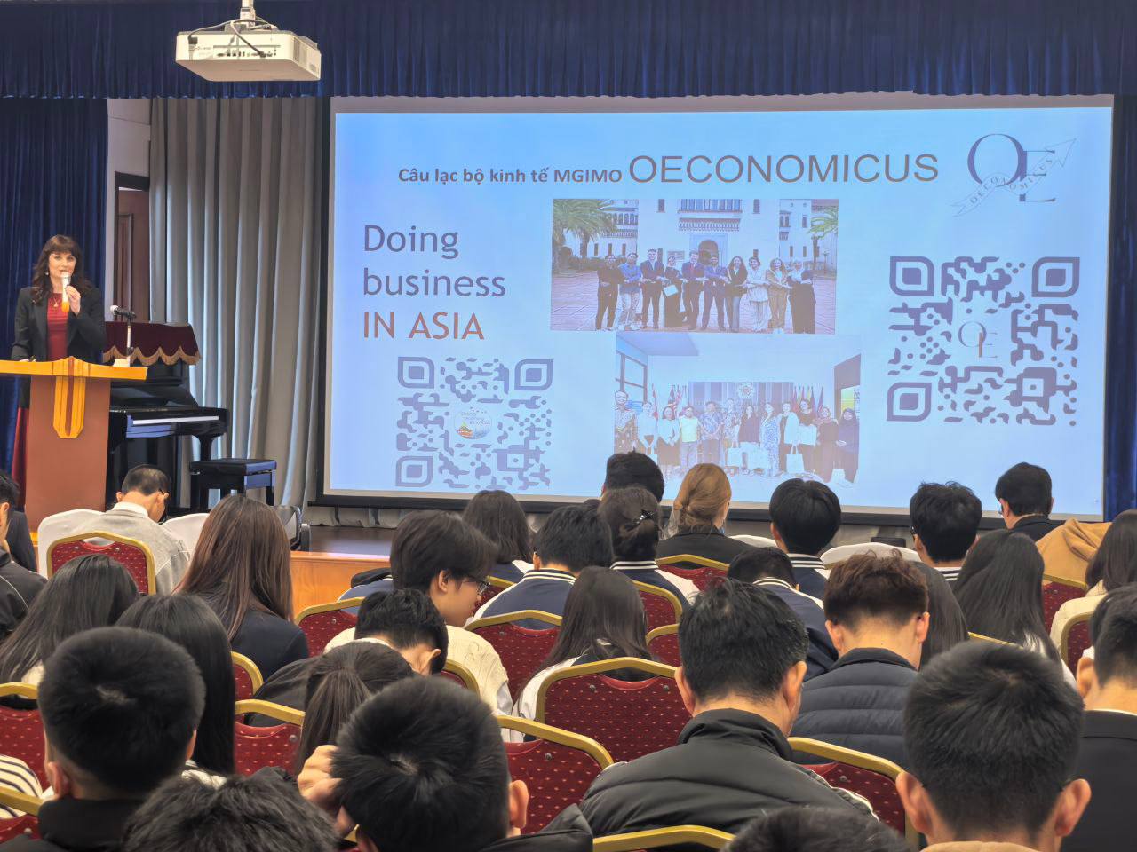 26 января на площадке Русского дома в Ханое состоялся «День МГИМО» — яркое и значимое событие, вызвавшее большой интерес у вьетнамской молодежи. Мероприятие открыло выступление Чрезвычайного и Полномочного Посла Российской Федерации во Вьетнаме Г.С. Бездетко, который отметил важность развития гуманитарного сотрудничества и образовательных связей между нашими странами.