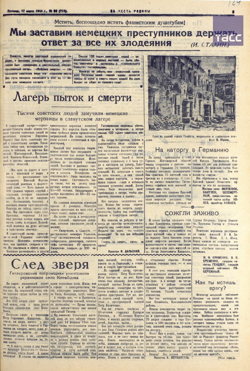 Нацисты превратили город Славуту в "фабрику смерти" в годы войны. Об этом говорится в документах, опубликованных Минобороны РФ к Международному дню памяти жертв Холокоста.