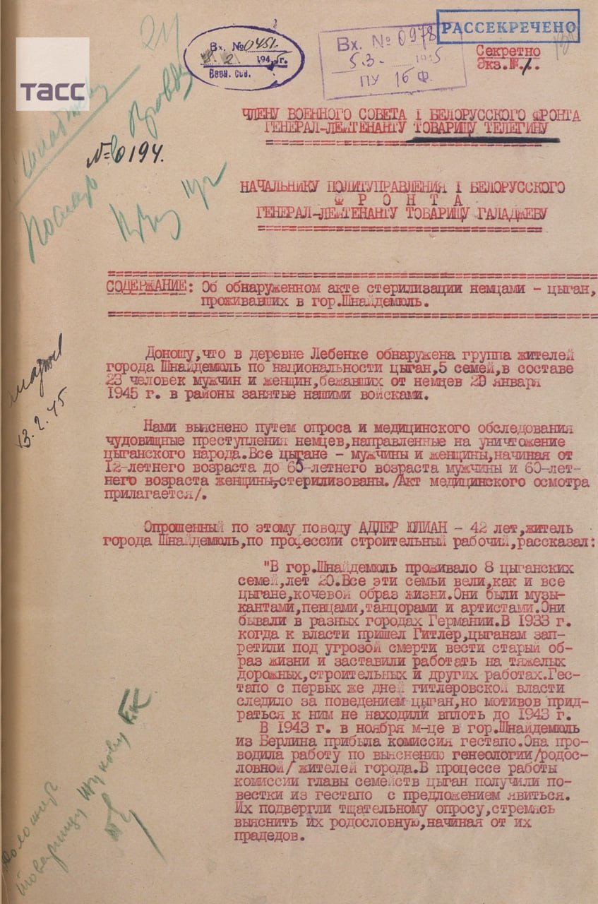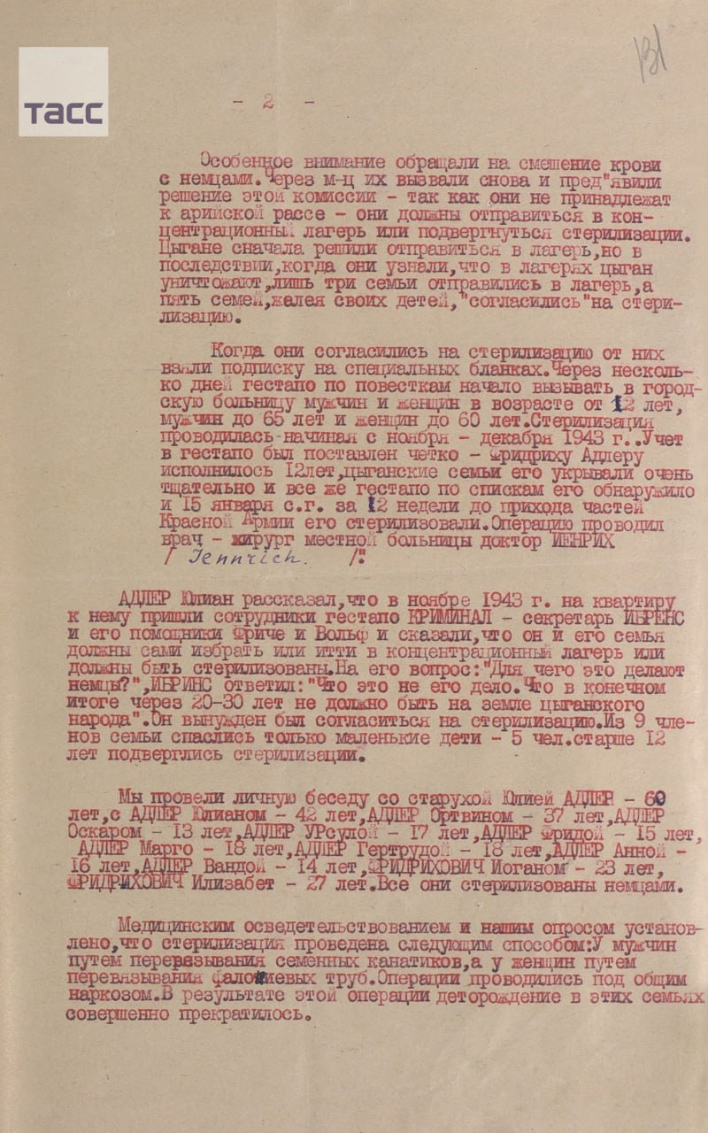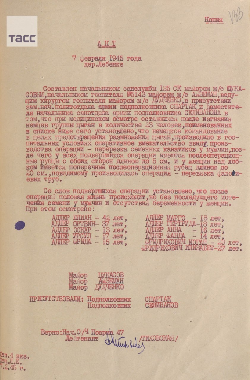 Нацисты во время Второй мировой войны заставляли цыган выбирать между концлагерем и стерилизацией. Об этом говорится в документах МО РФ, опубликованных в рамках проекта "Пепел Холокоста: трагедия, которую невозможно забыть".
