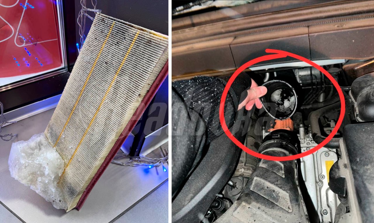 Второй неприятный сюрприз ждал владельцев гибридов в метели — во время езды снег набивается в воздухозаборник, ведущий к фильтру гибридной установки. Из-за этого двигатель внутреннего сгорания теряет мощность и не может нормально заряжать тяговую батарею, вынуждая останавливаться и чистить систему. Владельцы отмечают, что аналогичная конструктивная недоработка встречается и у некоторых BMW X5 и X7.